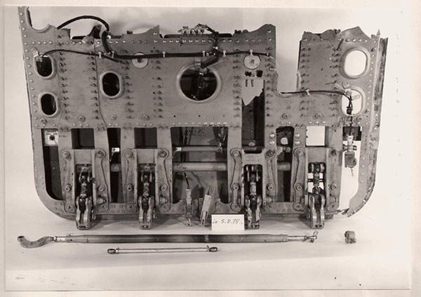 This severed control cables needed to operate the aircraft’s rudder and elevators.